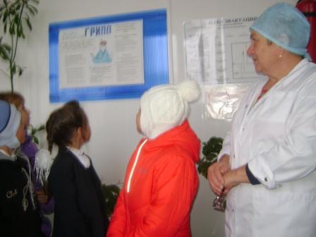 На пороге фельдшерско-акушерского пункта – лечебно-профилактического учреждения, детей первого и третьего класса вместе с классным руководителем Будановой А.Н., встретила заведующая медицинским пунктом Ильина Т.В.